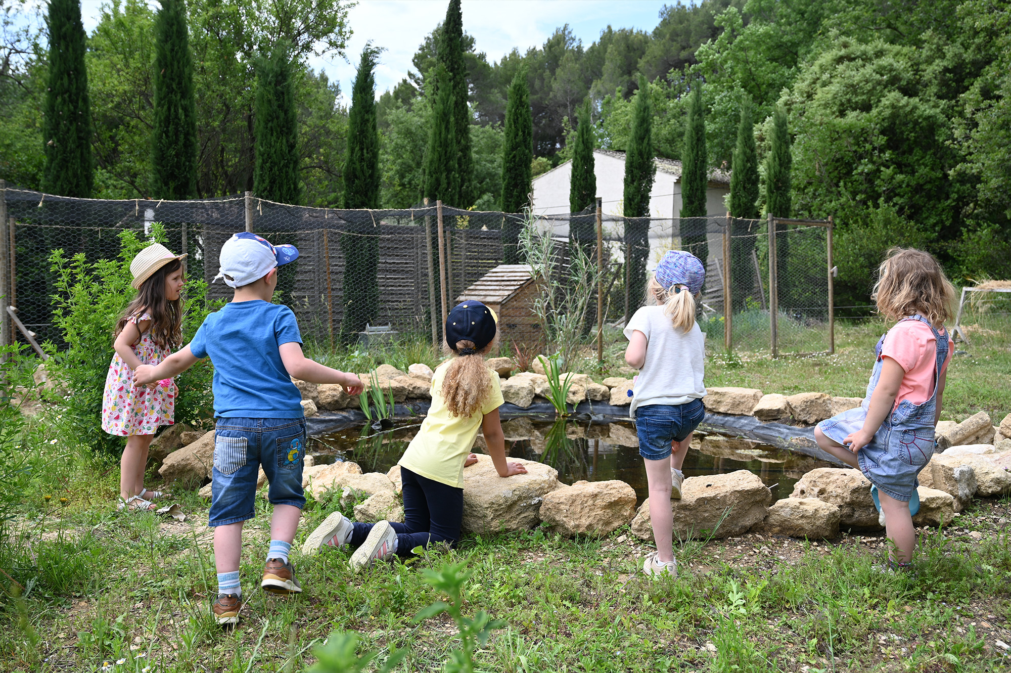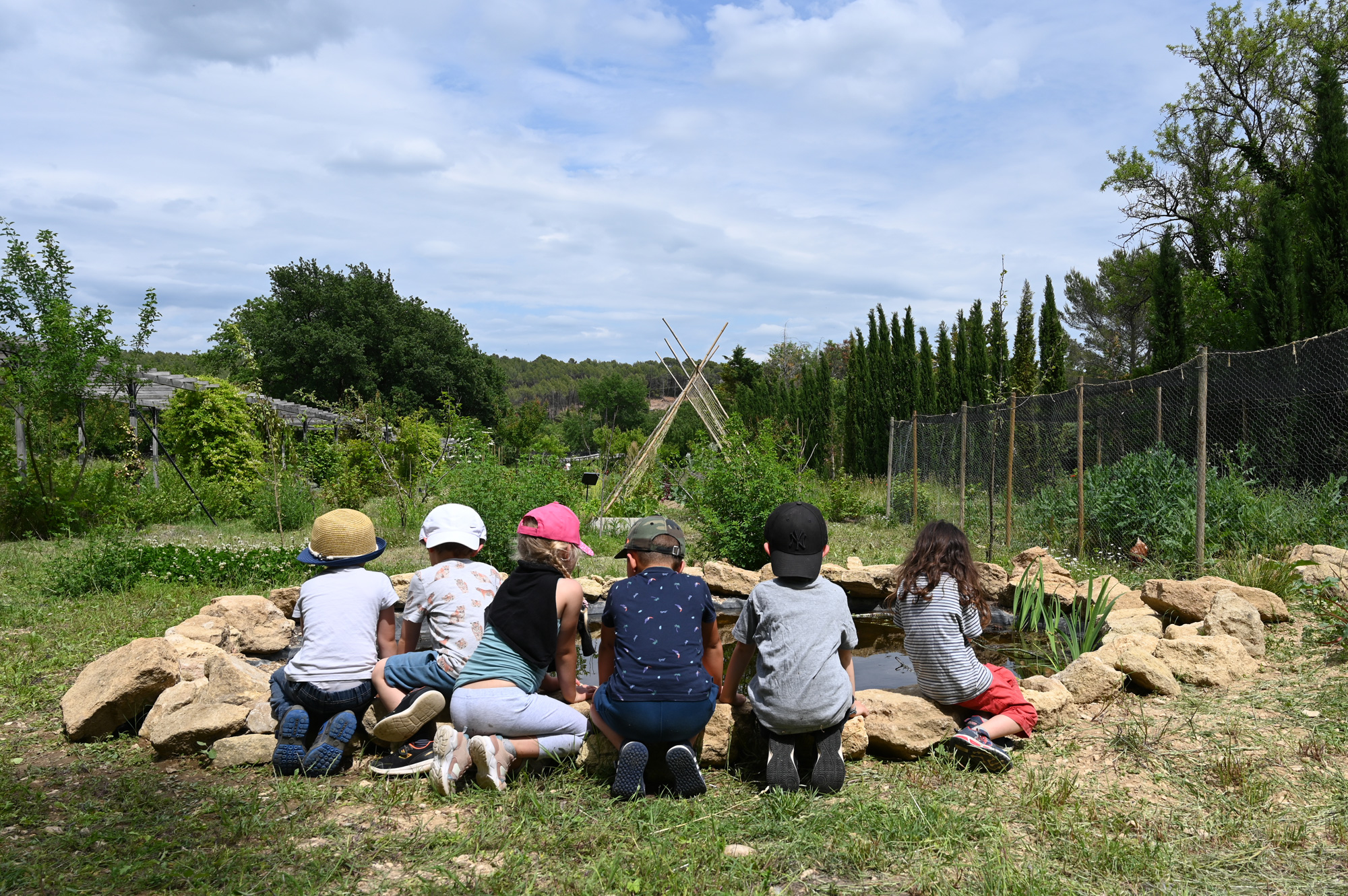 Lors de leur visite au Grand Potager, les élèves de l’école de Lauris ont pu observer la mare qui se situe à côté du poulailler, pour apprendre de nombreuses choses sur la biodiversité qui y est présente.