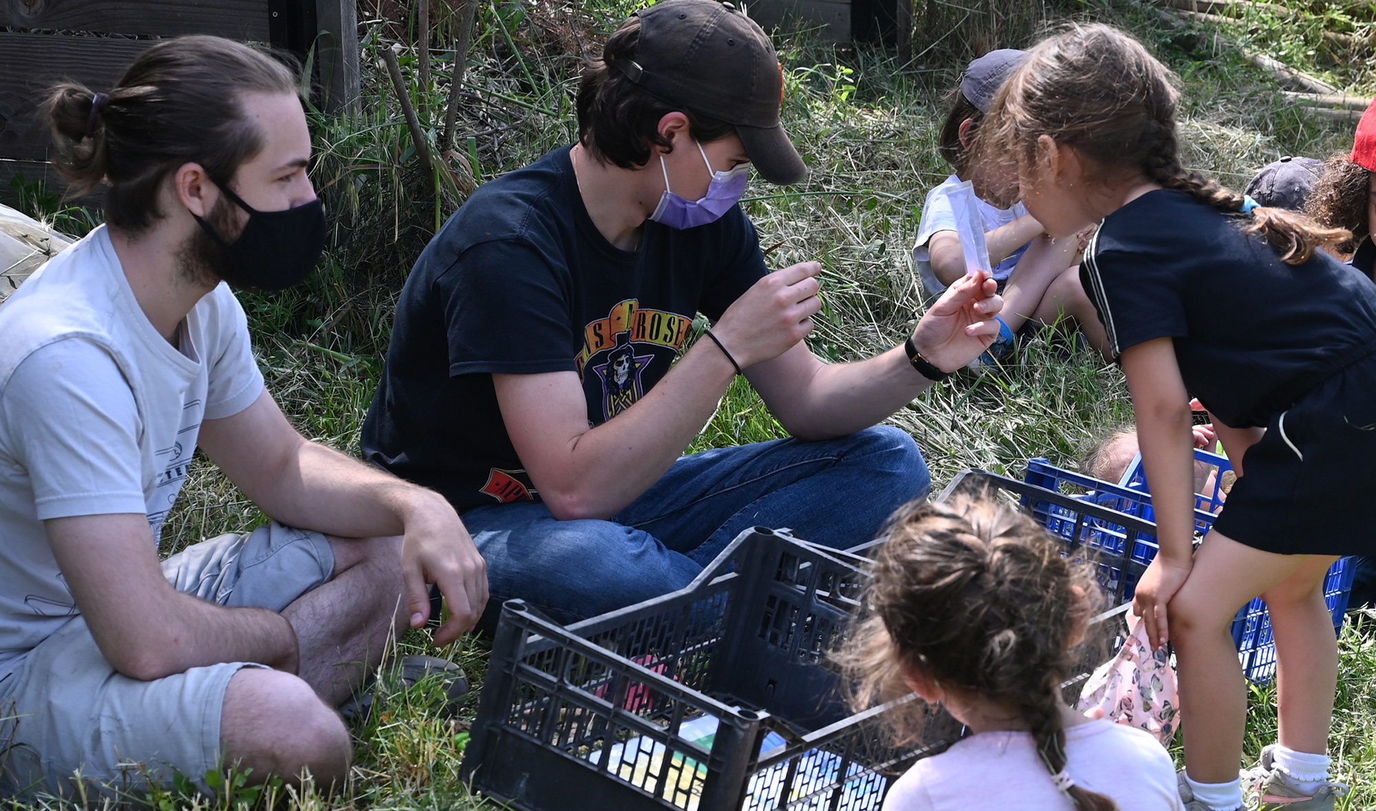 Plastic ? In the recycling bin ! Leftover chicken ? In the garbage can ! Vegetable peel ? In the compost ! The children then got down to business, or rather, got down to compost, by dropping off peel on their own and hunting for worms and other bugs that inhabit the compost…